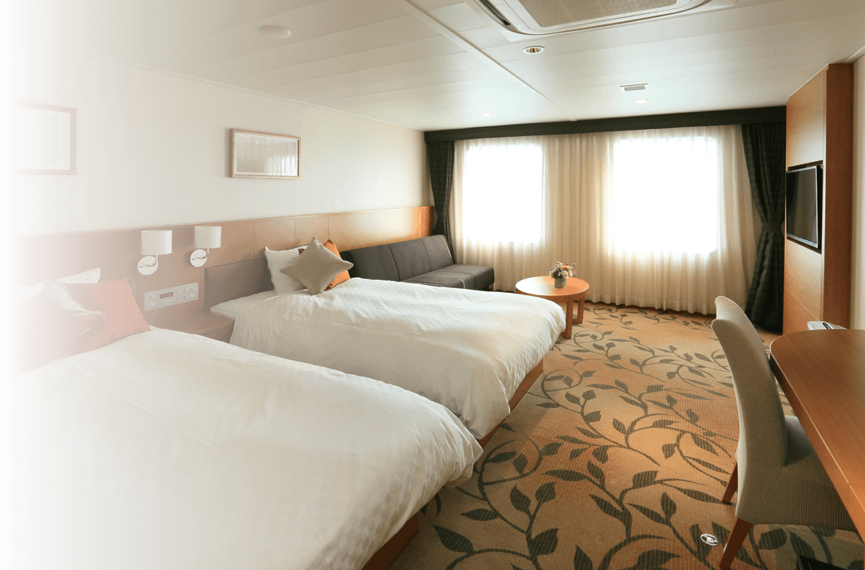 船内に個室を完備。おいしい食事は全て無料で提供。